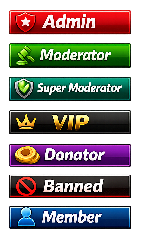 Each rank is uniquely styled with its own color identity and icon, while preserving a consistent overall design language. This ensures clear role distinction while keeping the forum visually organized.