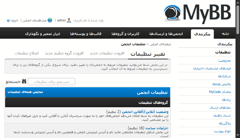 MyBB 1.8 ACP(Admin Control Panel) Theme in RTL version for RTL languages. (based on Default Theme that exist in MyBB 1.8.39 Package)