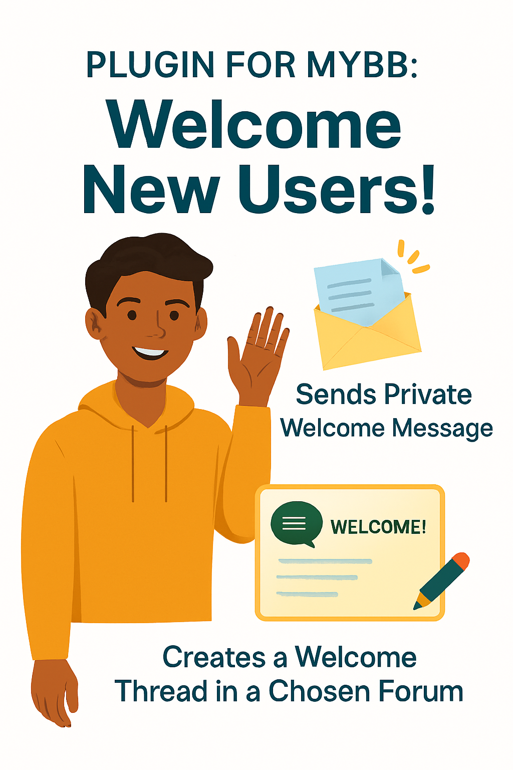 1. Private Message. Sents a new private message to the new users (If they can see private messages if they can not, just change the usergroup for they can see them)