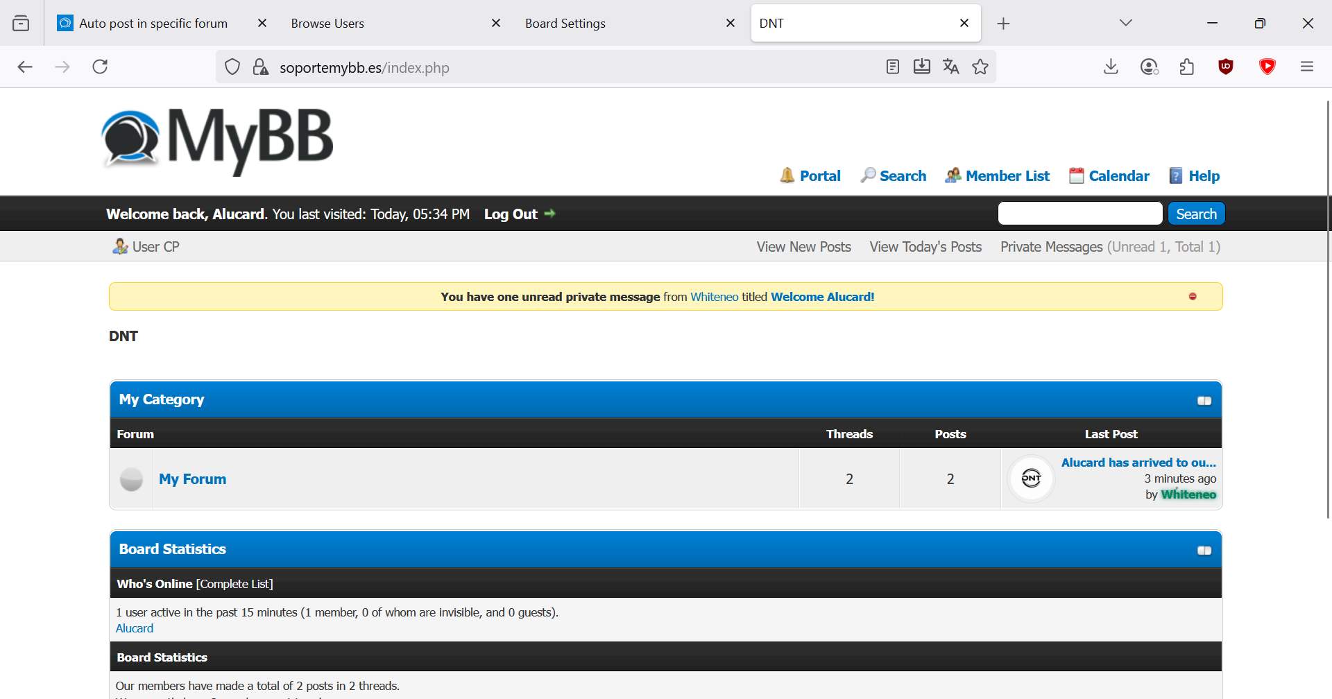 2. New thread. An introduction thread generated by Chatbot to present new users into the forums (You must select a valid forum to sent the thead, otherwise must cause some issue).