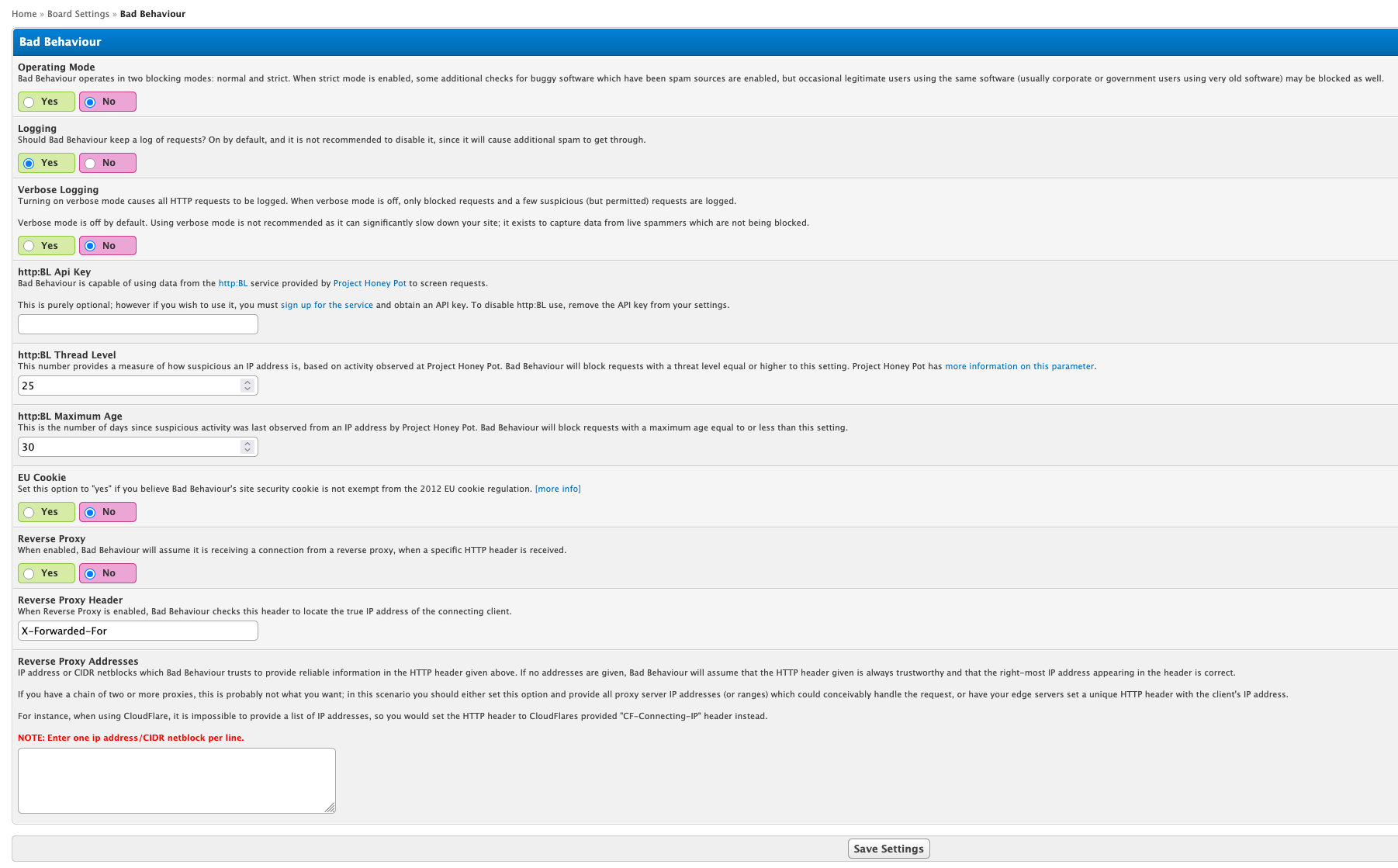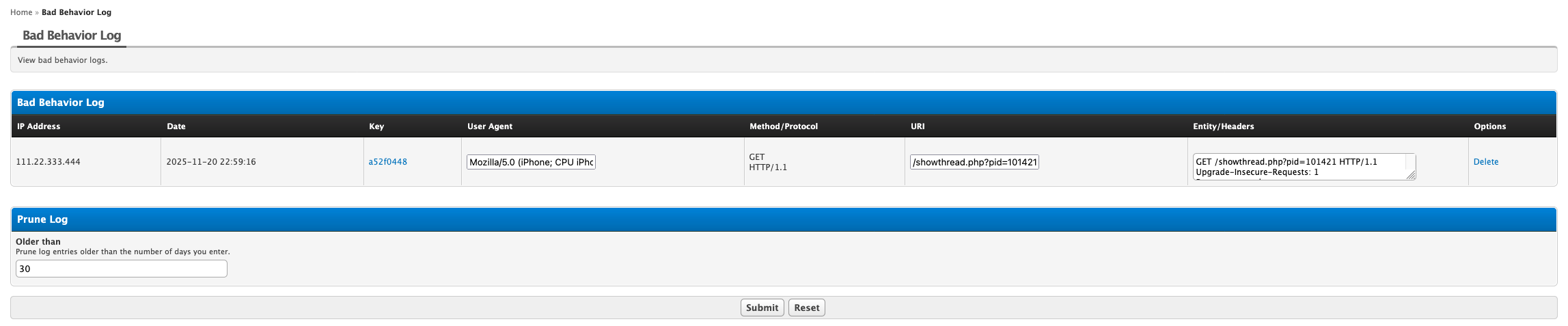 Đây là sự tích hợp của phần mềm Bad Behaviour với MyBB. Hành vi xấu là một giải pháp dựa trên PHP để chặn thư rác liên kết và robot cung cấp nó.