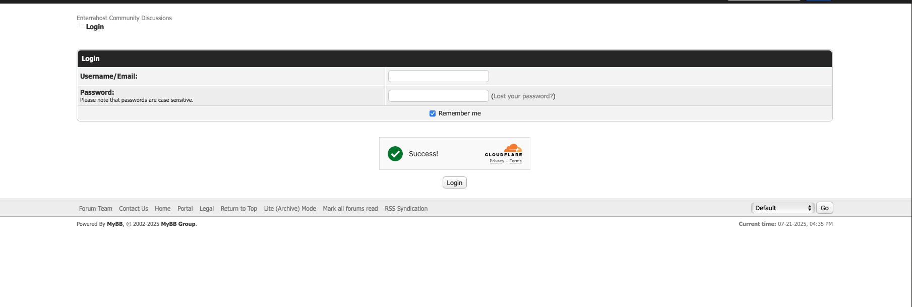 Features- Adds Cloudflare Turnstile as a CAPTCHA option in MyBB