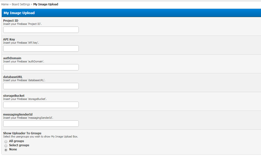 Tải lên hình ảnh của tôi là một giải pháp thay thế rất đơn giản cho bản mod đính kèm. Nó chỉ hoạt động với hình ảnh và cho phép người dùng nhanh chóng thêm hình ảnh vào bài đăng. Tất cả hình ảnh được lưu trữ trên Dự án Firebase của bạn và nó sẽ tự động chèn vào các bài đăng sau khi tải lên thành công. Bản mod này rất dễ cài đặt và dễ sử dụng.