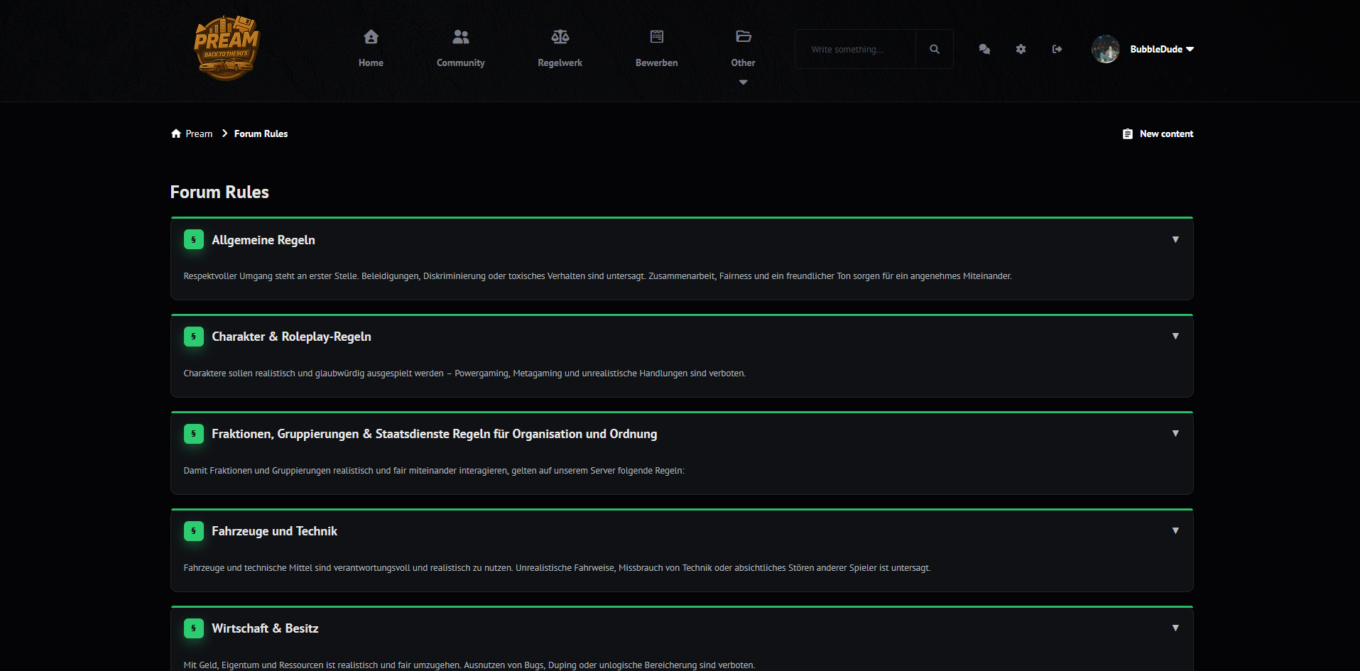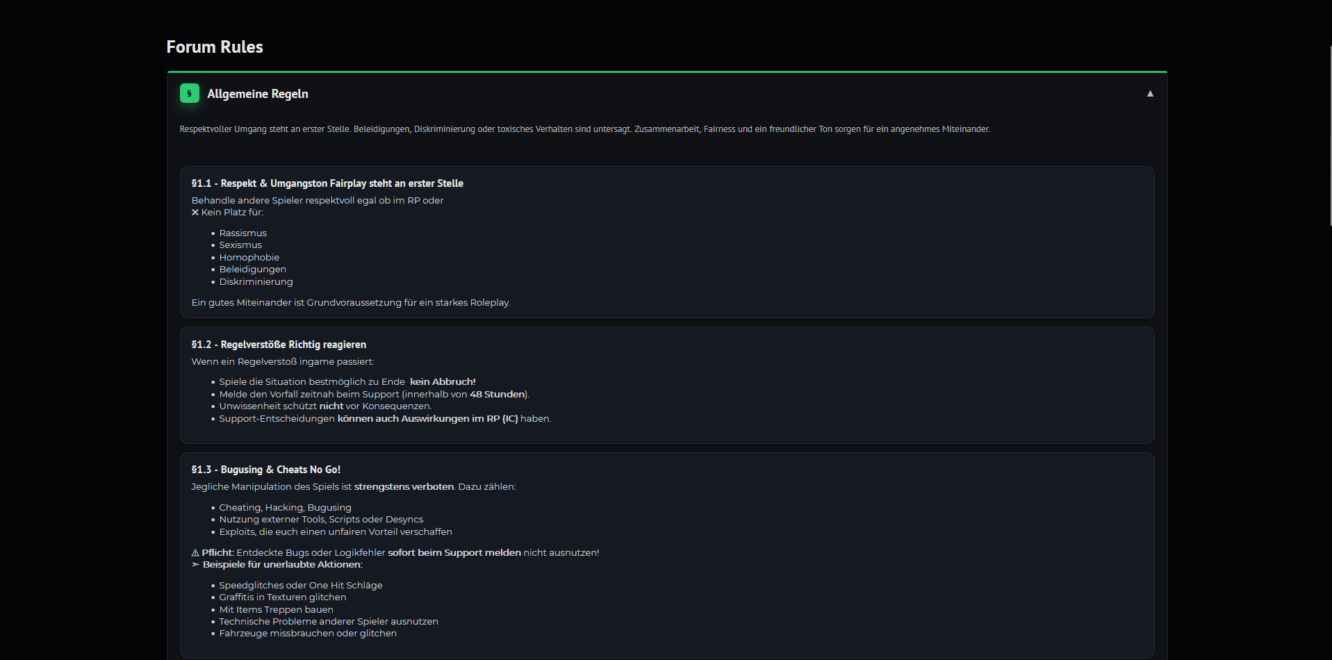 - Create, edit, reorder, activate/deactivate categories and paragraphs in ACP (Configuration → Rules).